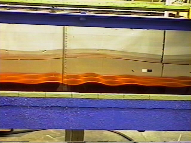 in a wave flume on a two-layer fluid. The motion of a surface wave has led to generation of a