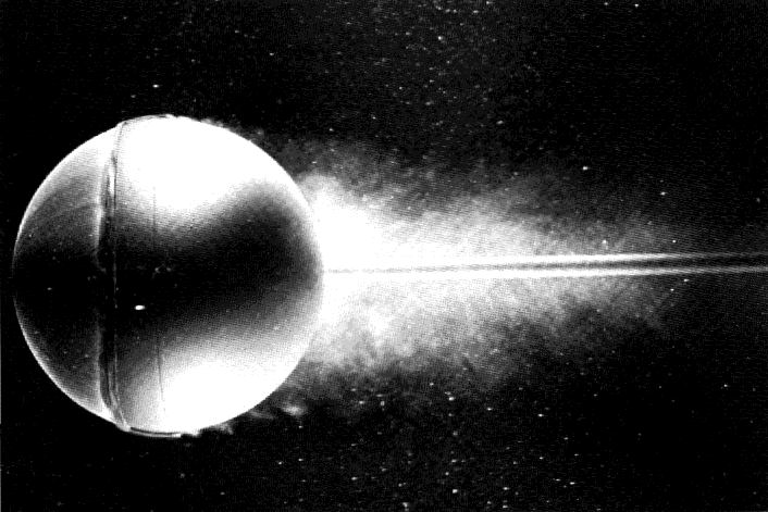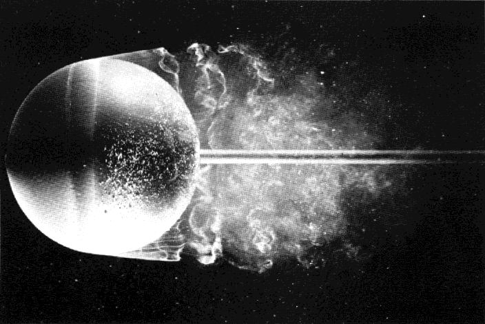 flow past a sphere at Re_D = 15,000. Dye in water shows a laminar boundary